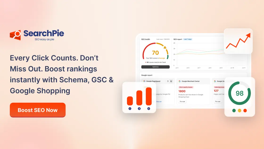 Want more traffic and sales? SearchPie’s got your back! Fix SEO issues, speed up your store, and use AI to boost rankings with better titles, meta tags, and images. Easy setup, fast results, and friendly 24/7 support - everything you need to get found and grow faster.
